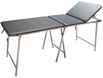 Acciaio cromato e gambe pieghevoli. Rivestimento in finta pelle lavabile.